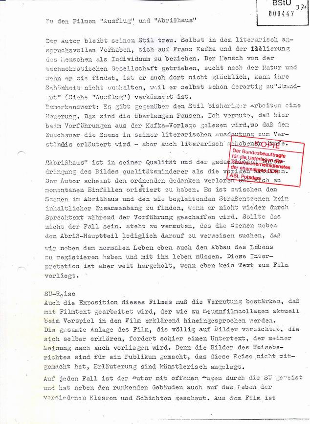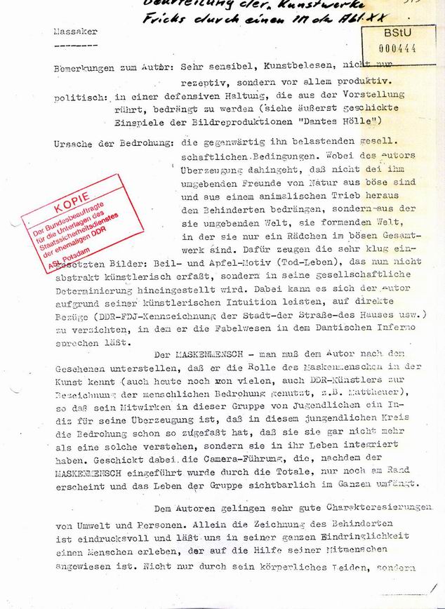 “Runkende Gebäude” - Die Kritiken eines Stasi - Rezensenten (zu “Massaker”, “Ausflug ins Gebirge”, “SU”