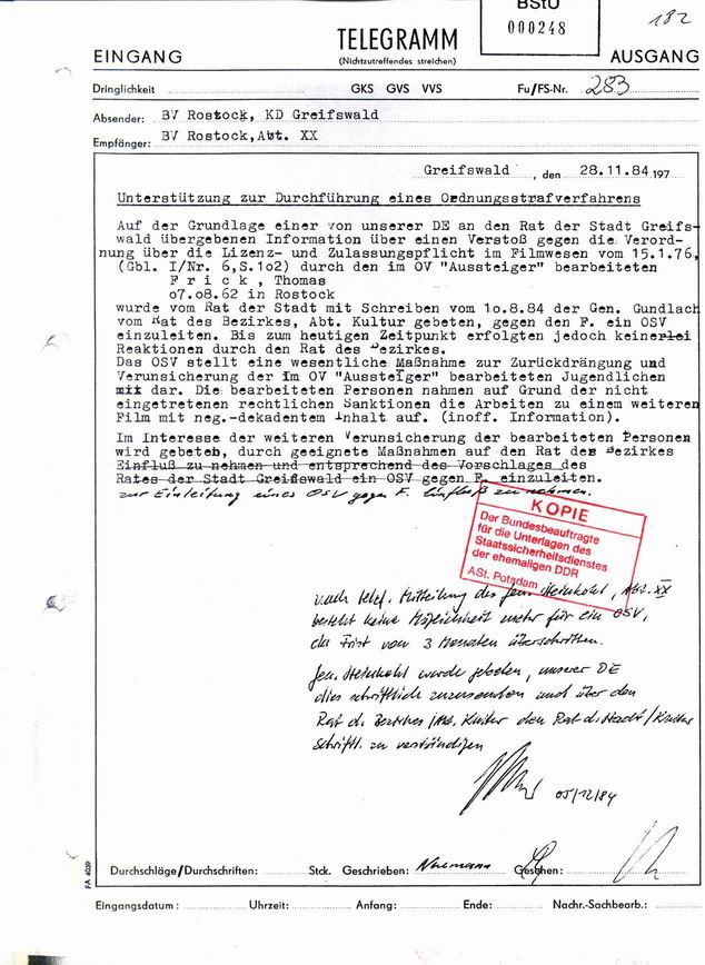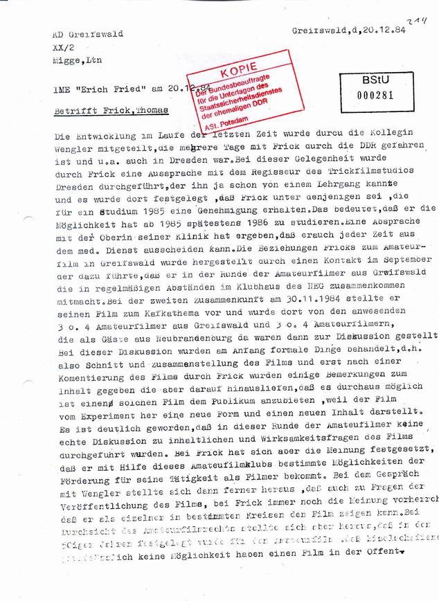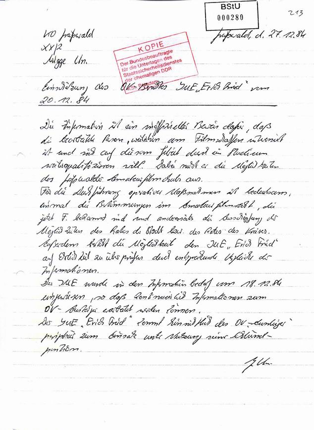 1976 - 1989” im Kapitel “Der Greifswalder Kreis - oder: Lizenz zum Filmen” festgehalten.