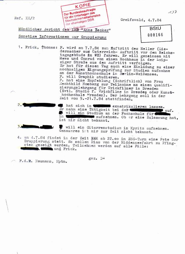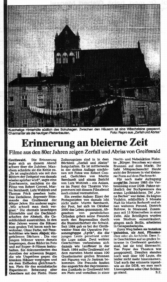 Schlegel, Mario Achsnick, Thomas Frydetzky) wurden geknüpft und gipfelten in den legendären “G.E.Z. - Informationasveranstaltungen” - illegalen Undergrondfilmfestivals.