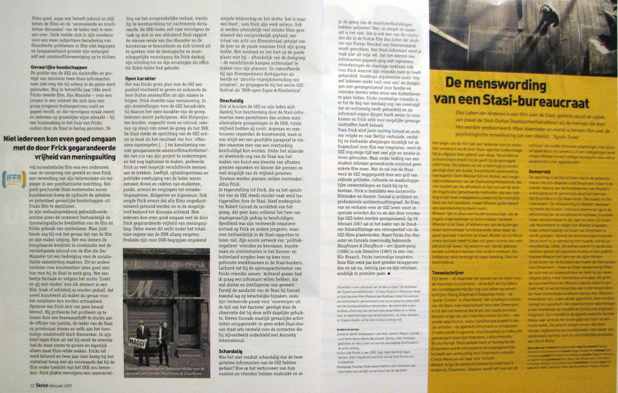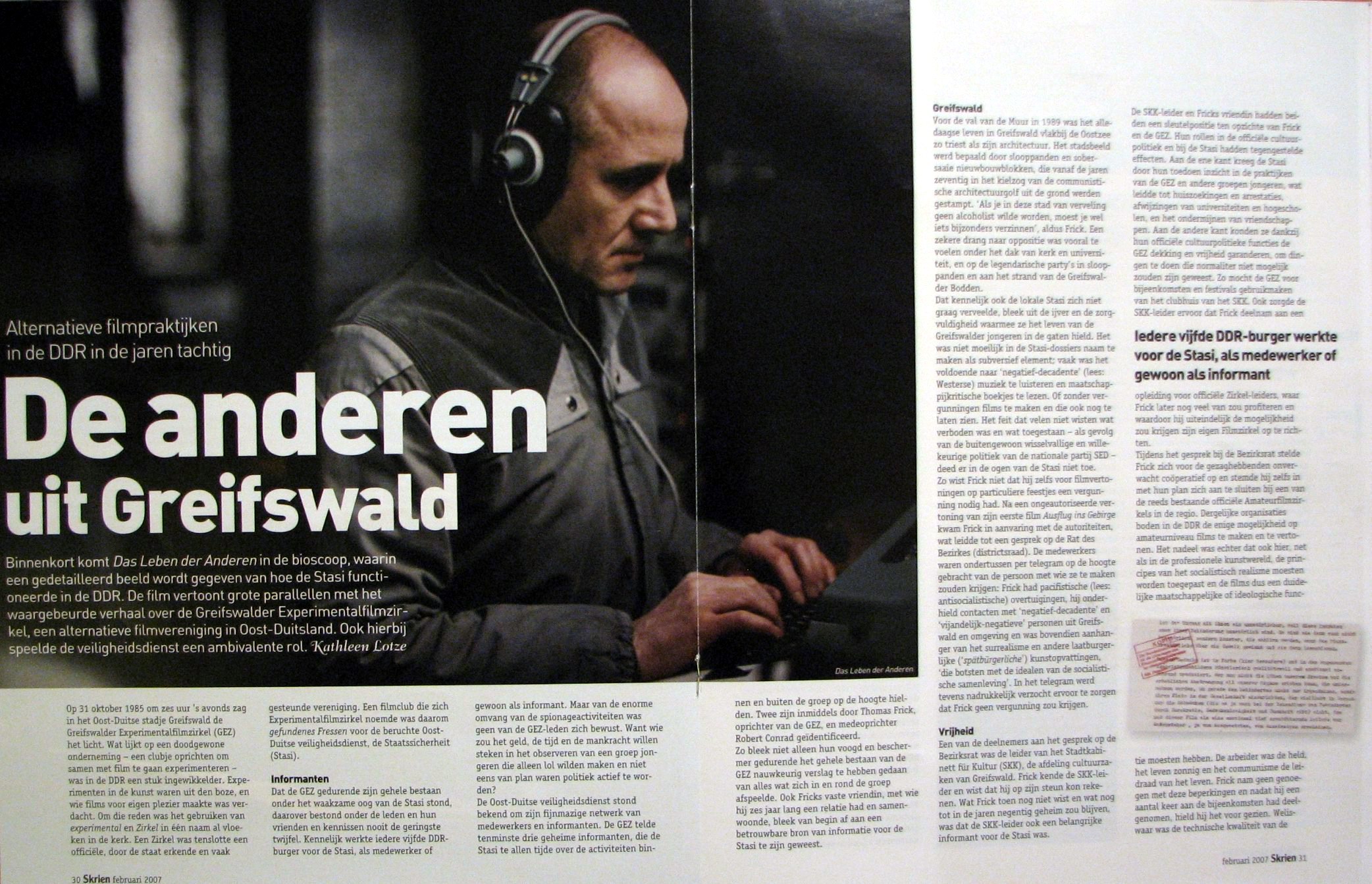 “Skrien” (niederländisches Filmmagazin): vergleicht die Repressalien gegen den von Thomas Frick gegründeten Greifswalder